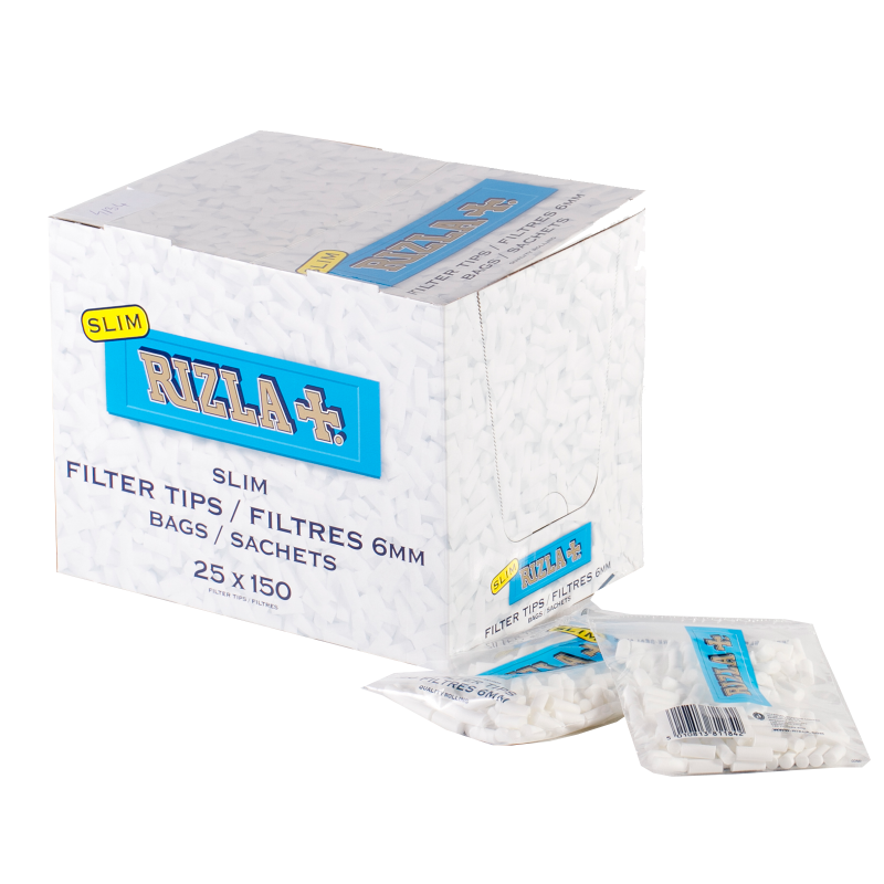 BAG OF RIZLA SLIM FILTERS. 150 UNITS. ZIP BOX. IDEAL FOR ROLLING SLIM CIGARETTES.