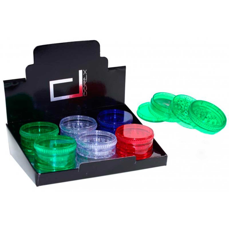 TRITURADORA DE PLÁSTICO DE 4 PARTES. EN 4 COLORES DIFERENTES: VERDE, TRANSPARENTE, ROJO Y AZUL